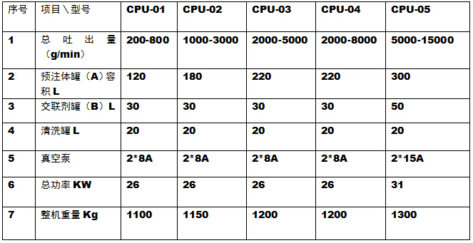四.CPU--02型高溫彈性體澆注機(jī)主要參數(shù)